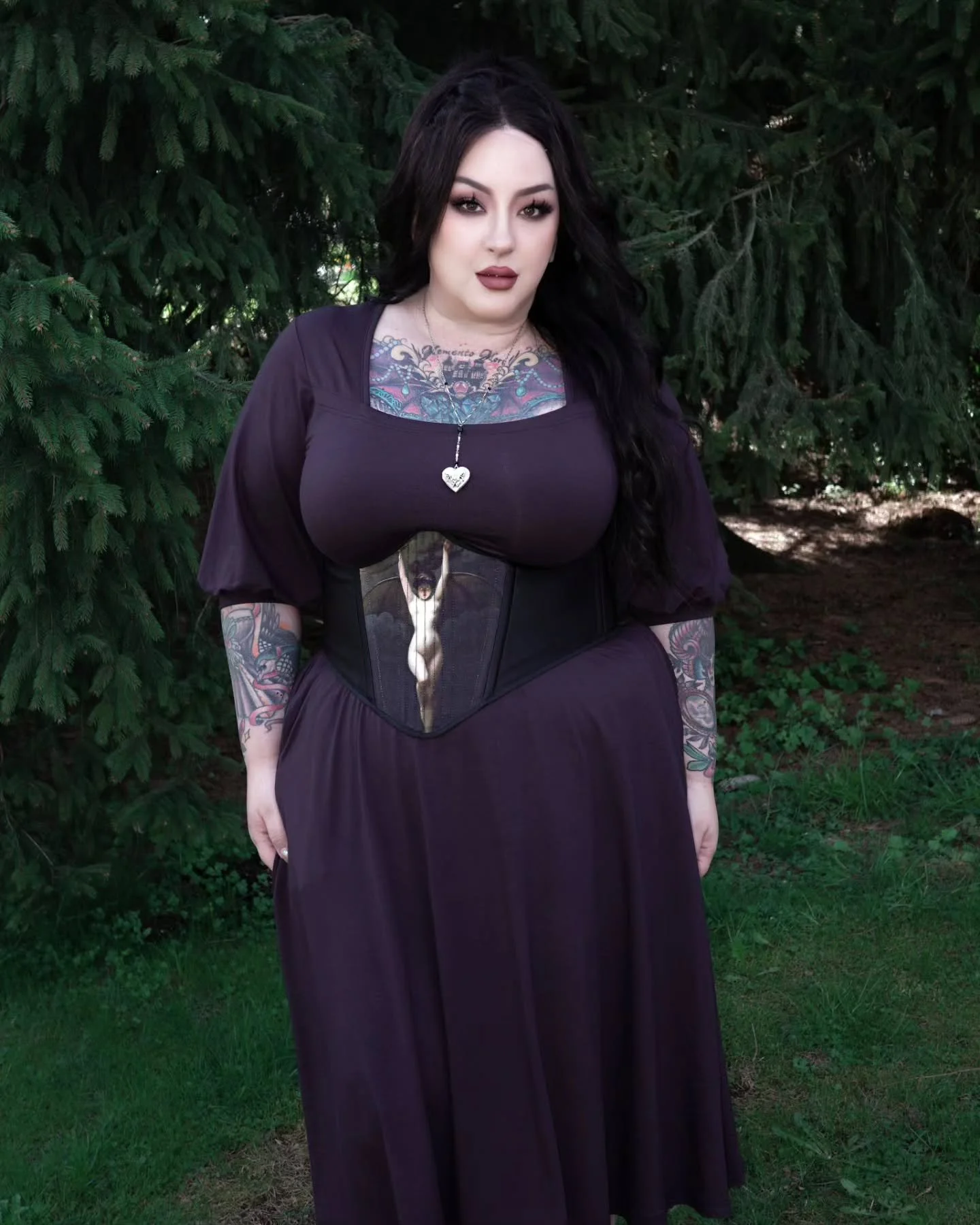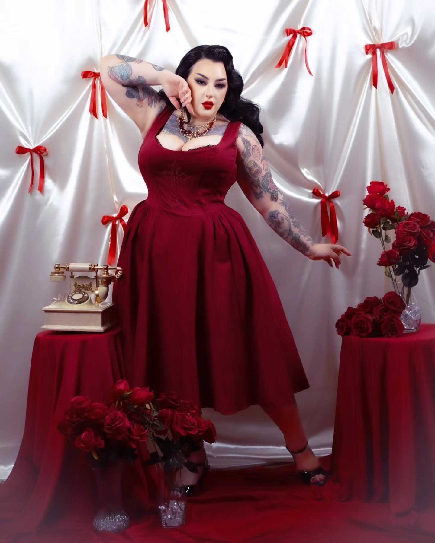 A lifelong lover of monster movies and subculture fashion, Kerosene’s path to the spotlight began in 2002 when she was discovered at a goth club in her hometown of Amsterdam, NL. Having grown up bullied and unseen by traditional beauty standards, stepping in front of the camera felt radical, but also right. At the time, plus-size models were rarely visible outside the back pages of home shopping catalogs, in oversized clothing promoted as ‘flattering’ while hiding every curve. Kerosene set out to change that.